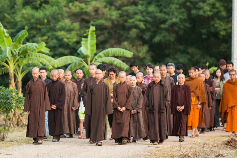 Với năng lượng yểm trợ của đại chúng xuất sĩ, cả gia đình thực tập thiền ôm, có mặt cho nhau rất sâu sắc. Xúc động nhất là hình ảnh cha của thầy Pháp Ấn ôm từng đứa cháu và nói rằng: “Bà mất rồi, ông thương cháu lắm, thương nhiều lắm!”. Anh Thuần khóc như mưa khi thiền ôm với thầy Pháp Ấn, chị Hạnh có lẽ gần gũi chăm sóc mẹ nhiều nhất nên dễ khóc hơn mấy em trai của mình. Hình ảnh đẹp quá nên một số chị em chúng con cũng cảm động, khóc theo. Chúng con thấy sự có mặt, yểm trợ khi huynh đệ cần là hình ảnh rất đẹp và thiêng liêng trong tăng thân, và chính chúng con cũng được nuôi dưỡng.