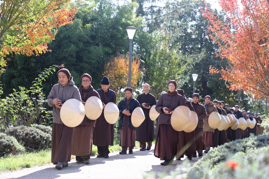 Điều may mắn lớn của chúng ta là Sư Ông đã gầy dựng tăng thân. Cùng một khổ đau nhưng có tăng thân thì khác; mà “một mình một ngựa” lại khác. Trong đời sống hằng ngày, nếu mình biết đầu tư vào tăng thân, nương tựa tăng thân thì chính những vốn liếng đó sẽ cứu mình, giúp mình không bỏ cuộc.